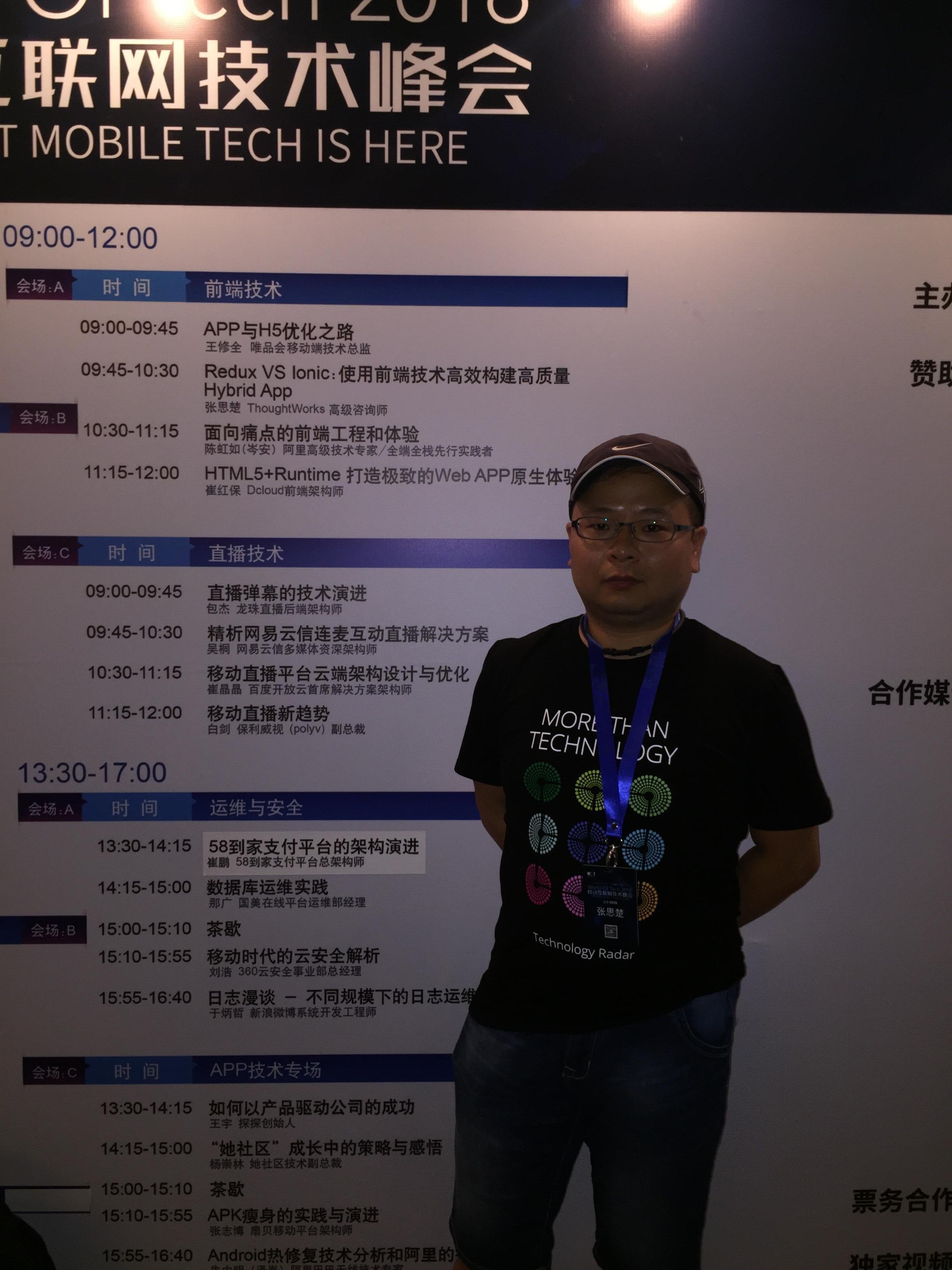 我有幸接受 51CTO 的邀请,参加 WOT2016移动互联网技术峰会,我将带来主题为《Redux VS Ionic : 使用前端技术高效构建高质量Hybrid App》的演讲。下面是会前的采访,欢迎大家届时来参加并一起讨论。